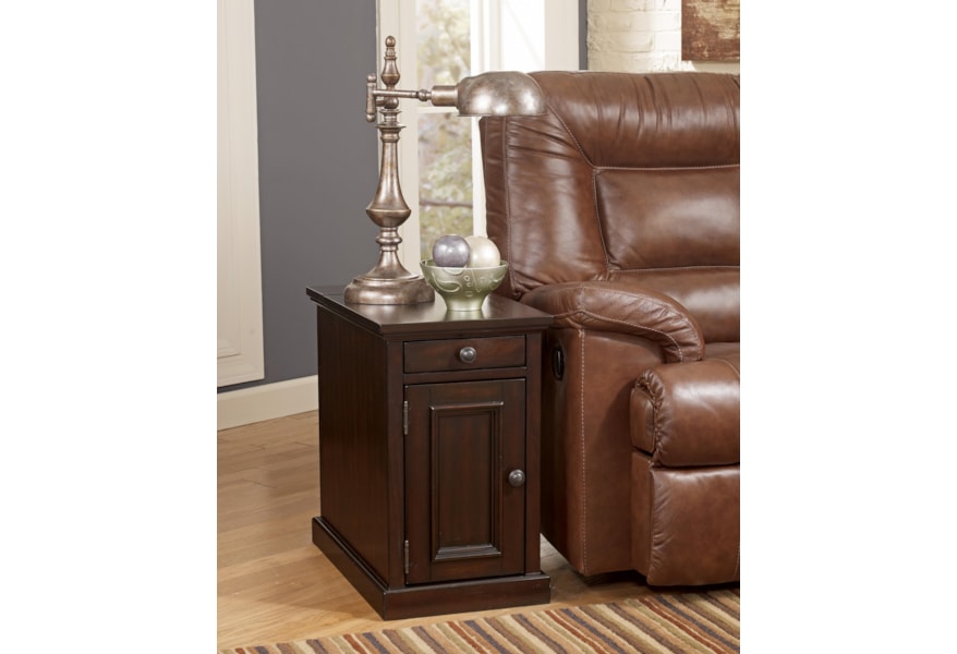Signature Design By Ashley Laflorn Chairside End Table With Power Outlets Pull Out Shelf Prime Brothers Furniture End Tables